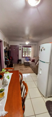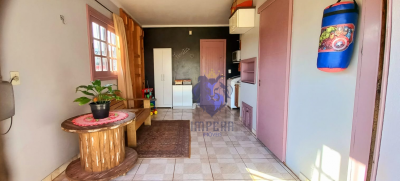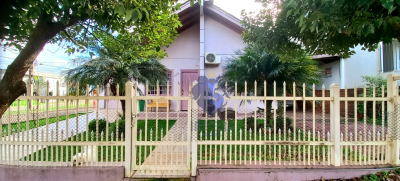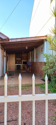 Descrição › Bela casa de esquina, com dois dormitórios, garagem fechada, quiosque, pátio fechado, dois portões eletrônicos. O imóvel possui sistema de alarme e um split instalado. Apenas alguns móveis fazem parte da venda.