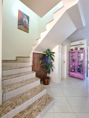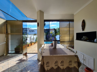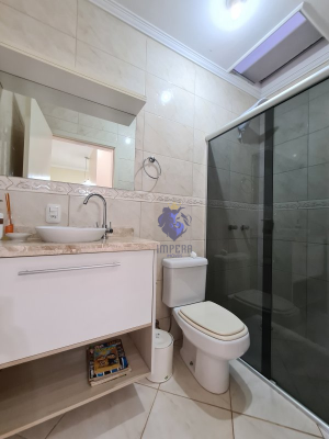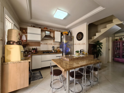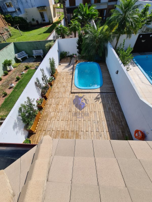Descrição › Lindo sobrado no Bairro Universitário, amplo e aconchegante, semi mobiliado, com móveis sob medida na cozinha, banheiro e dormitório de solteiro, possui ainda piscina com pátio amplo nos fundos.